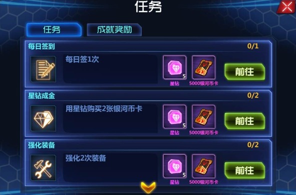 任务系统分为:每日任务和成就奖励