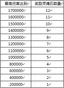 活动奖励:伤害输出及可获得灵魂石分配如下。