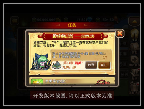 觉醒任务第三环:狼人参与完成精英关卡:第14章-乱石山坡,并亲自打败巨魔,1次
