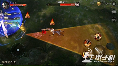 藏锋——可以利用目押技的眩晕和燃烧,当BOSS被燃烧击飞刚刚站起来时,利用崩山落来眩晕BOSS,再来使用目押三使BOSS进入灼烧状态。接着使用疾风烈和迅雷破来输出伤害,技能使用完后便到处翻滚等待技能冷却。