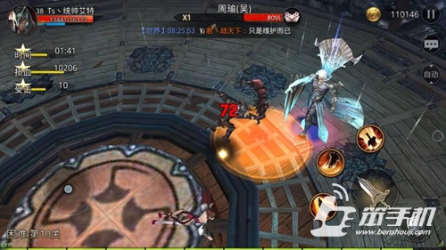 1、周瑜--周瑜的技能十分炫酷,但炫酷的同时,如果战斗力低于推荐战斗力,可能会对你造成“秒杀”的伤害。所以在低于推荐战斗力的情况下,翻滚躲避周瑜有攻击提示的技能(如图)然后在旁边对其攻击。在无法躲避周瑜攻击的情况下,利用技能对伤害的免疫躲避(在冒险模式内,使用技能时是免疫伤害的)。如果周瑜没有攻击提示,也可以使用技能来提高输出,技能开始进入冷却状态后,便到处翻滚,等待技能冷却完毕。