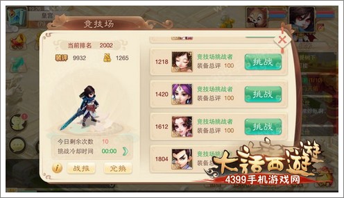 4、点击【挑战】按钮即可挑战排行榜,输赢都有奖励,但是只有赢了才有竞技场积分。
