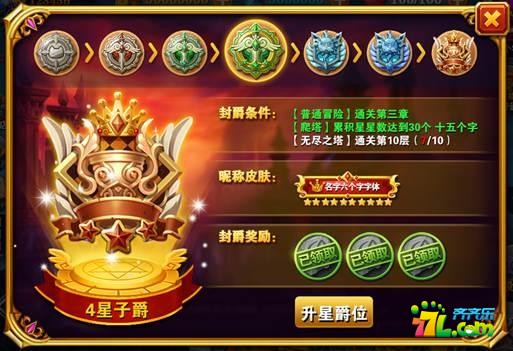 2)n级爵位达成后方可激活n+1级爵位,不可跳跃式激活