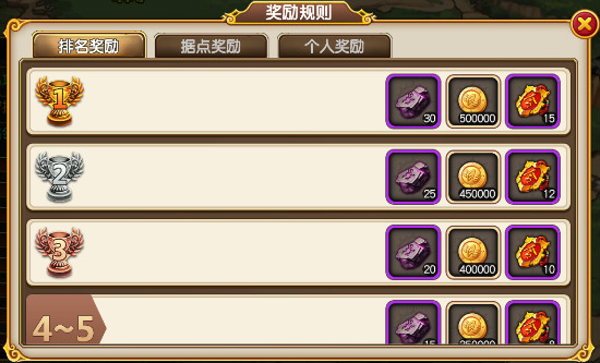 2.排名奖励根据公会积分排名来决定。每周日晚上10点结算排名。