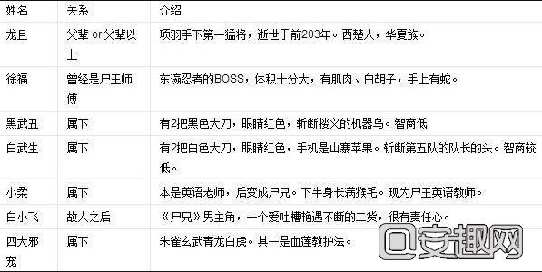 徐福曾经是尸王师傅东瀛忍者的BOSS,体积十分大,有肌肉、白胡子,手上有蛇。