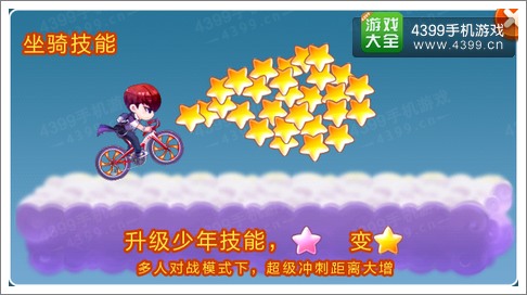 坐骑技能:飞行得分加成130%,超级冲刺,开局冲刺800米,终极冲刺