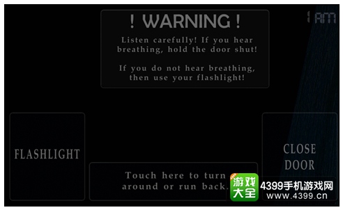 操作上本作也做了较大的改变,这一关玩家不再是通过监视器来确认玩具熊的动向,而是亲自到门口听声音确认玩具熊,因此本作小编认为是系列作品中最为恐怖的,胆小的自己走远些,另外由于是听声音辨认,所以游戏对于音效设备的要求还是蛮大的。