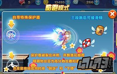 3、自带保护盾,如果保护盾破裂会冲刺,并飘落花瓣雨,障碍物会变成高分救生圈和酒桶