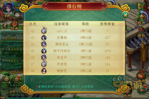 每天5:00结算排名,记录本服比武场前100名的玩家。