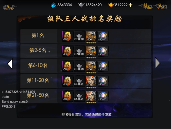积分排名可以获得丰厚的奖励,奖励类型包括:神将碎片、封灵石、银两以及进阶丹,奖励通过邮件发送,是不是各位仙友都心动了呢,请期待新版本的上线,让我们驰骋沙场。