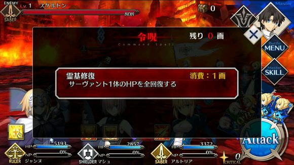 让我写这个教程的原因 这个咒令 新手教程什么都没说…… 自己打到 黑saber 团灭才发现能复活……消耗3咒令 冷却时间24小时后恢复(自己时间没到 不知道24小时是恢复一个咒令还是3个) 平时使用一个咒令能回满血