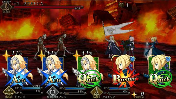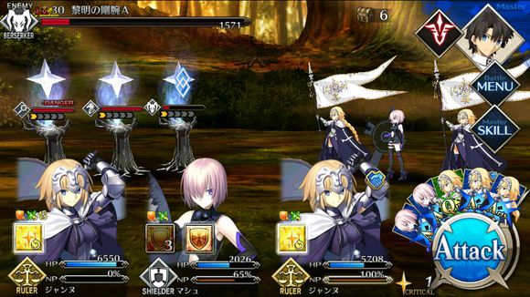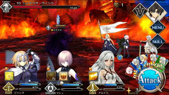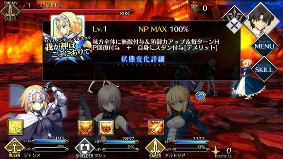 敌人 这些 下面有 气槽的 每回合会 增加一格 满了后 下一回合会 释放宝具 这时候就可以用 盾娘的 无敌(这个真心好用 一回合无敌随便给谁) 主角的一回合闪避技能 贞德第二个技能 真名看破 减伤 或者自己也直接用宝具 全体无敌来抗下来 战斗顺序好像固定 我们先打 打完后 敌人打的样子 特殊技能 效果除外