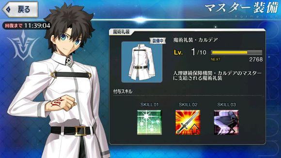 主角礼装 看样子可以更换的 换后 技能也不一样 这个升级 目前就靠 战斗后给经验