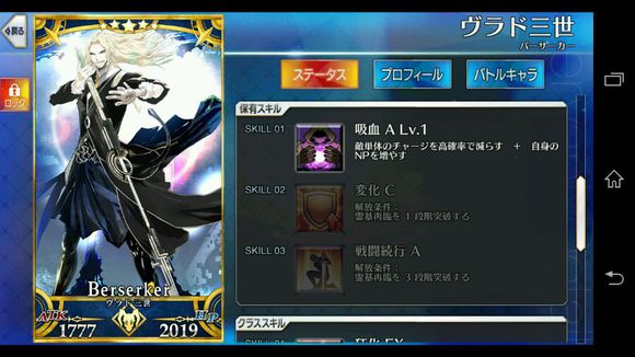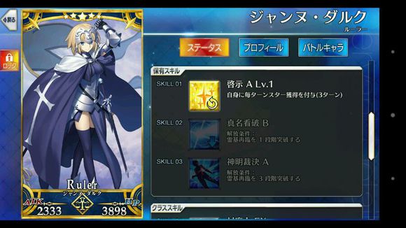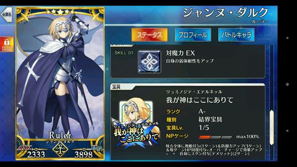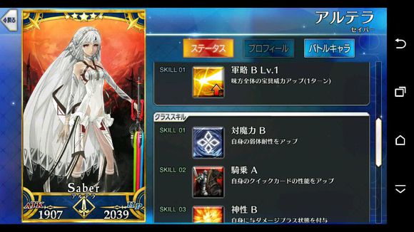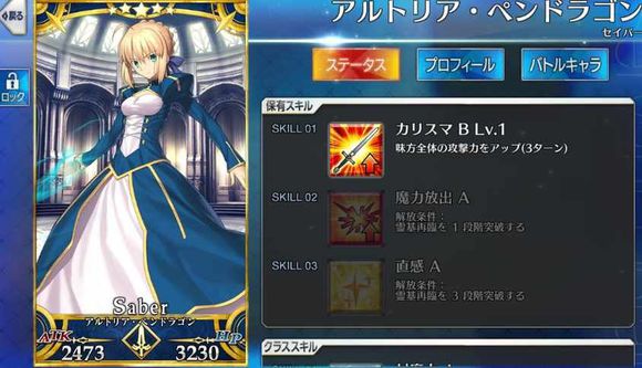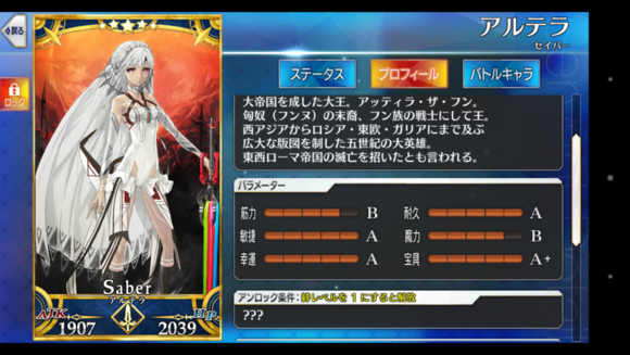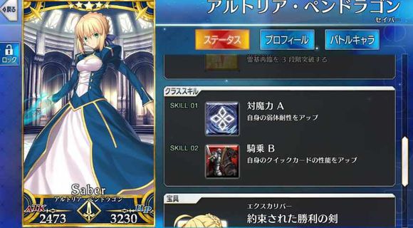 筋力B 耐久A 敏捷A 魔力B 幸运A 宝具A+