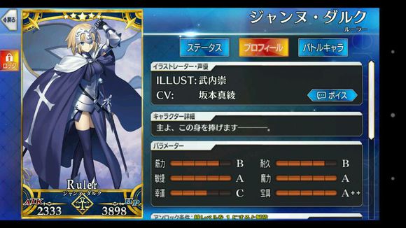 筋力B 耐久B 敏捷A 魔力A 幸运C 宝具A++
