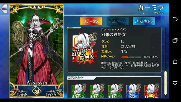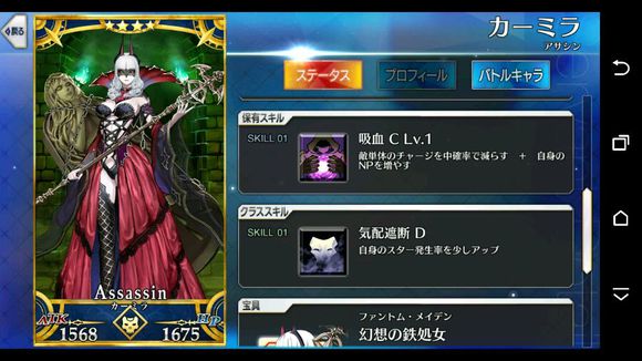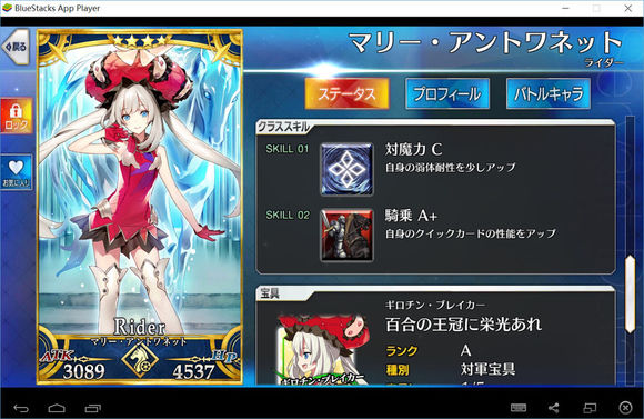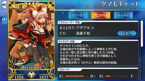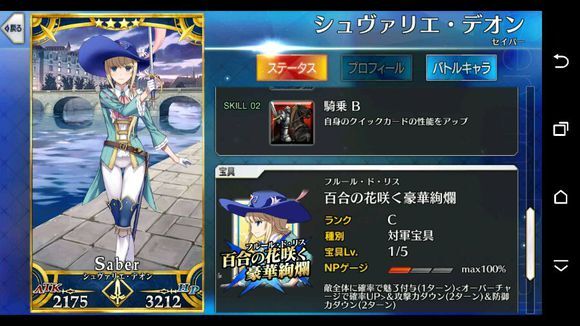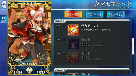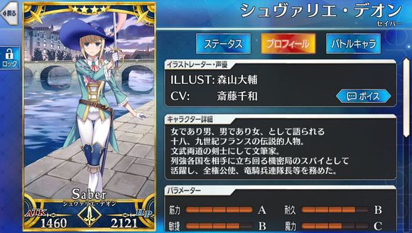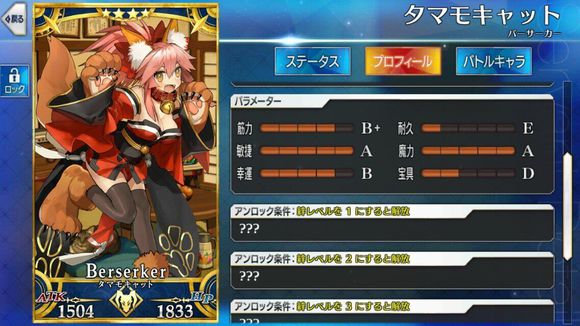 筋力C 耐久C 敏捷B 魔力A 幸运A+ 宝具B