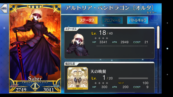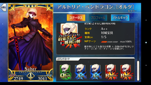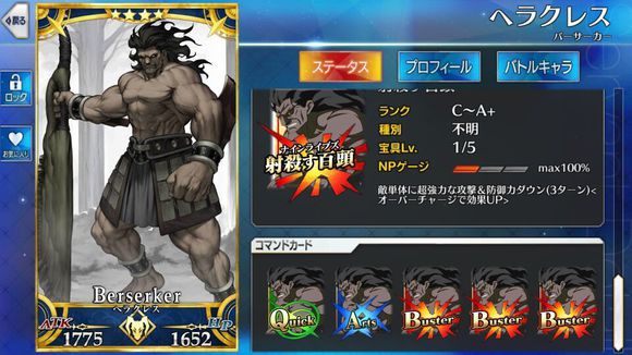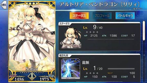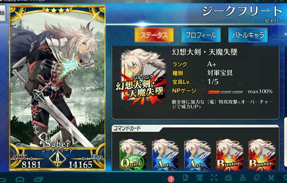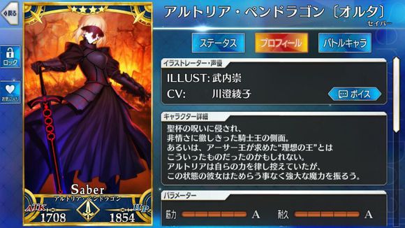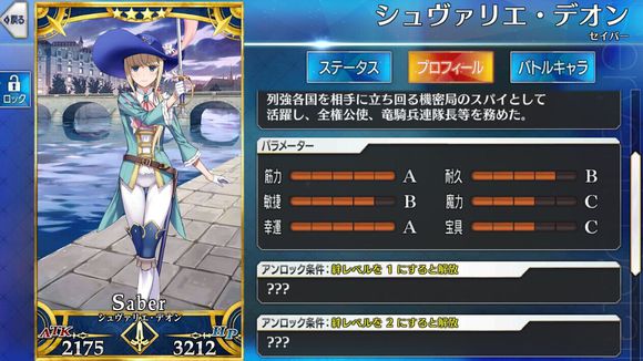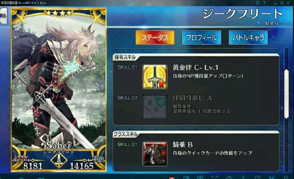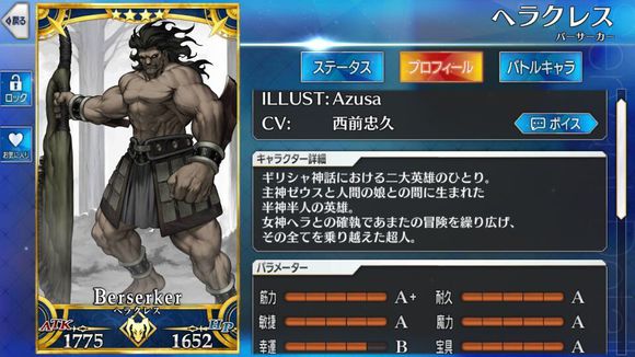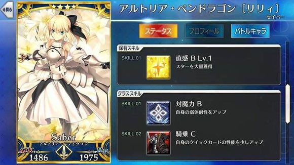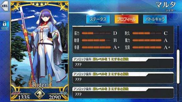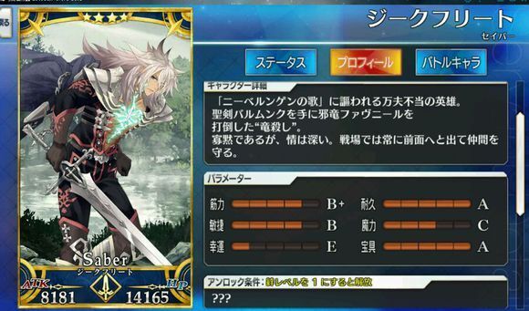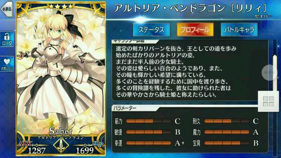 筋力A 耐久B 敏捷B 魔力C 幸运A 宝具C