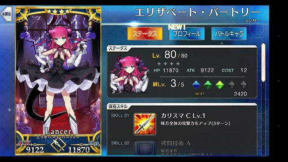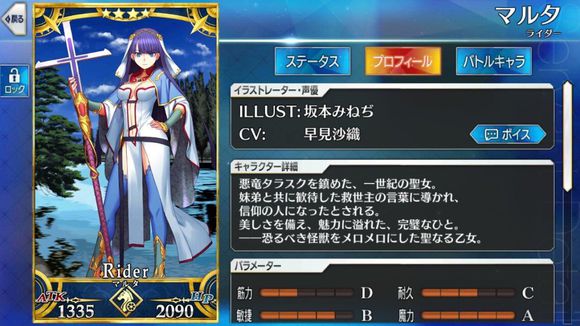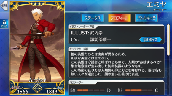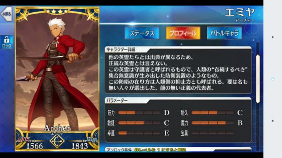 筋力C 耐久D 敏捷E 魔力A 幸运B 宝具D