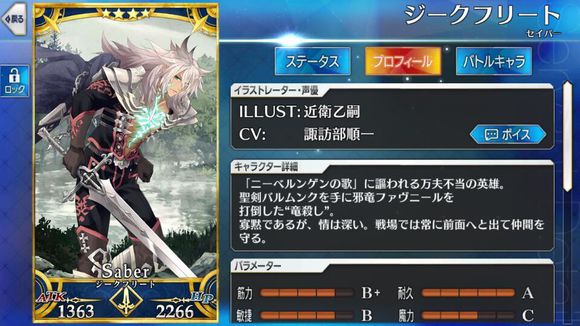筋力B+ 耐久A 敏捷B 魔力C 幸运E 宝具A