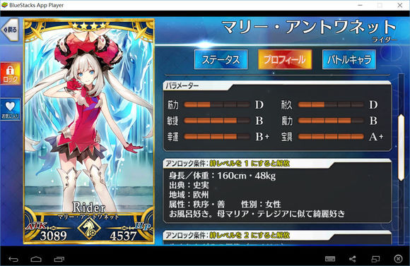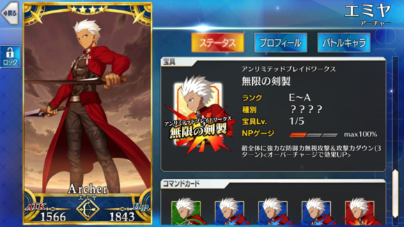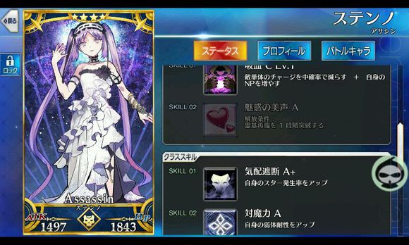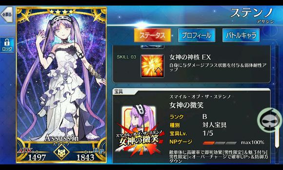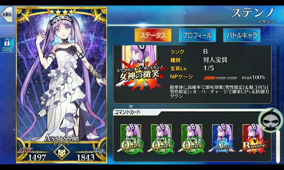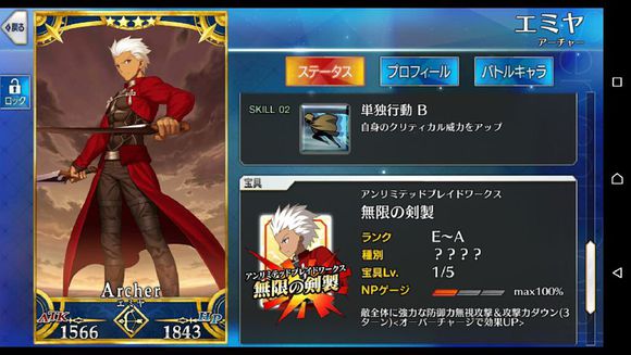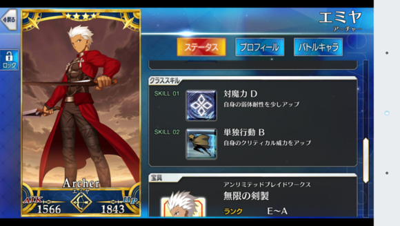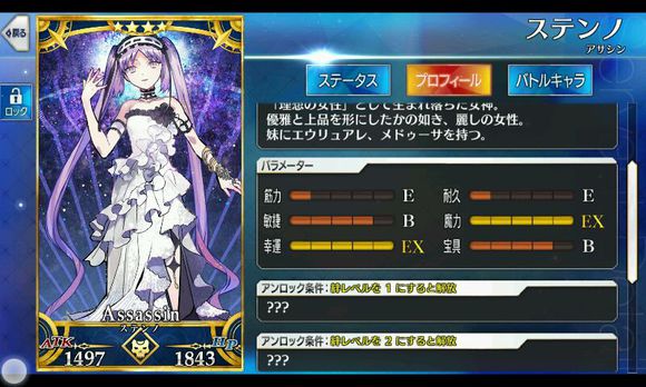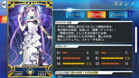 筋力E 耐久E 敏捷B 魔力EX 幸运EX 宝具B