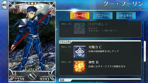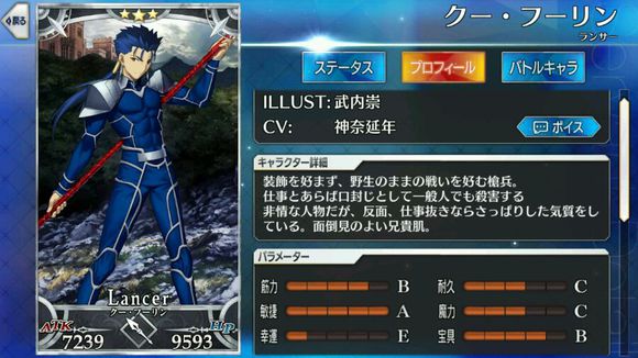 筋力B 耐久C 敏捷A 魔力C 幸运E 宝具B