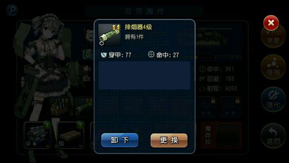 2.排烟器,增加中量穿甲和命中,命中感人的突击车必备,其他妹子没有足够的强化火药的时候也可以考虑,整体性能不如强化火药