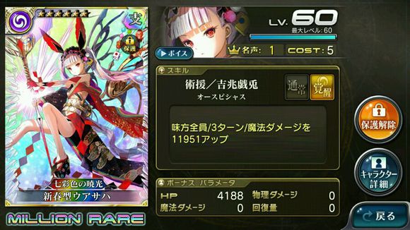 我相信各位刚看到这张卡时会觉得这张卡也不错,降物防还有给我方物理盾。但目前日服玩家的卡组质量都很不错了,叠叠buff一张卡打个20万左右都不是问题,这点减防显得太过鸡肋,而且加的物理盾只能持续一回合,还不如减点boss攻击减低奶的负担,所以这张卡在刚出来时可以带,但卡组质量上去后请自觉更换掉更好的