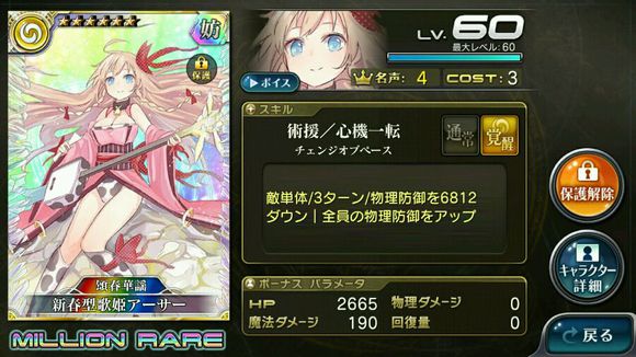 目前日服争议最大的两张卡,女王和奶牛,下面我们用奶牛做个例子。敌方单体三回合物防降低接近7000外加700-900我方全员的物防。