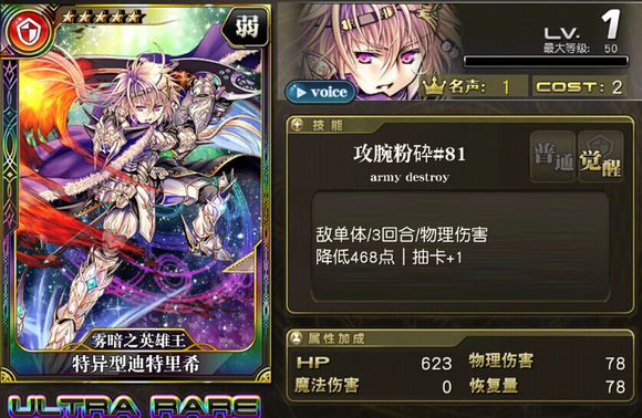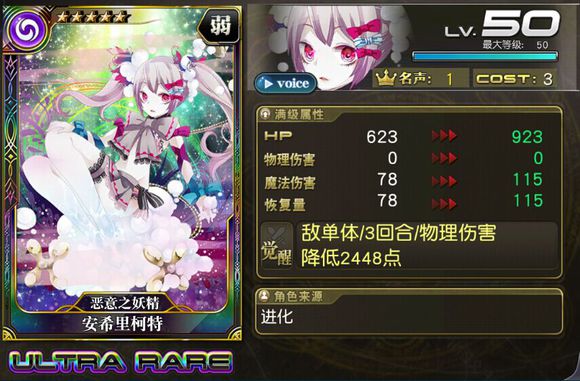 由于是游戏初期,很多人都没把地图打通关。最后一张地图的安希里柯特(俗称泡泡)并没有入手,这张从富豪借过来的减物攻既容易获得而且还能提升不错的血量,不用觉醒就能抽牌更是成为卡组的核心原因。