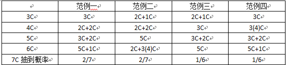 从以上我们看出,这套牌对牌序要求不高,因为几乎没有卡手的牌,唯一的5C还是我们输出的核心,前面摸不到最好,摸到了也不慌,只要7C前打出去就行。而且从范例4中我们可以看出,即使6C前只打出4张牌,但是只要保证手牌满的情况下,6C打出5C+1C,此时A为1,但是7C要求系统置入2张牌到B,所以抽到盾娘的概率还有16%左右。