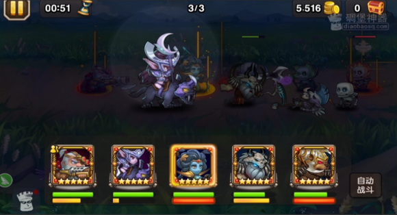 该类挑战模式小白之前也有讲过,比较推荐大家的英雄有火枪,死灵法师这类技能是丢在血少的单位身上的英雄,由于其他小怪都不掉血,所以保证了技能一定会丢在boss身上,同时这关由于boss是前排,并且小怪攻击伤害还不错,考虑拍拍熊,拍拍熊在小怪的攻击下回能非常快。再带上一些无差别的物理aoe攻击英雄即可