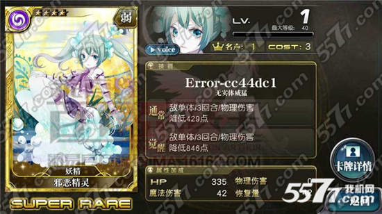 盗贼版的魔法少女,一样的面板一样的效果,觉醒后上升14460的魔法buff,出自与蛋池但是不算稀有卡,缺点同魔法少女,3C单回合,只能配合高C卡用,比较尴尬。