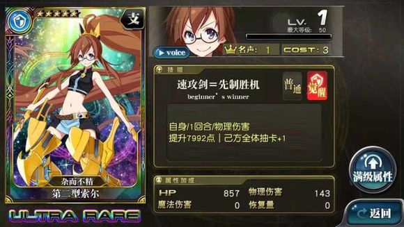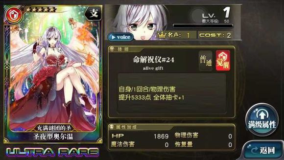 优点:升满级hp2769,五星中的血卡,2c不卡手,全员补卡,物理buff提升。