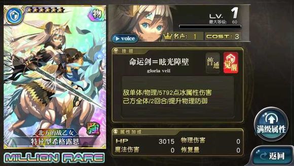 技能觉醒效果:敌单体/物理/5,792(10,536)之水攻击、我方全体/2回合/物理防御提升(940)