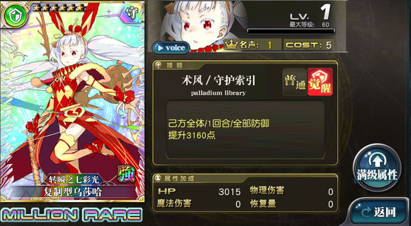 技能觉醒效果:我方全体/1回合/全防御3,160(5,756)提升。