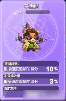 章鱼熊的登场效果是根据速度追加得分,小编感觉这个技能应该没有多厉害。小编感觉可能乐天射手会厉害一点哦。
