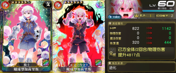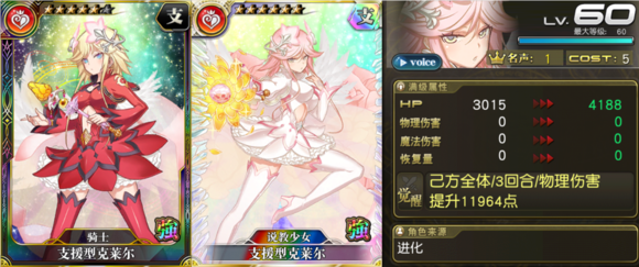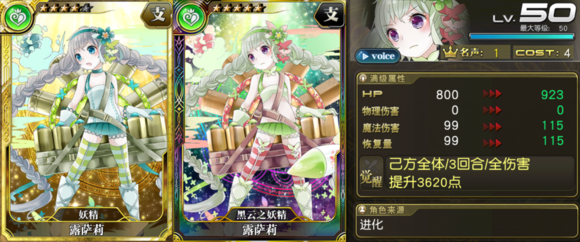物魔双用支援卡,本期活动卡,极易掉落,不必兑换。对魔法输出和物理输出角色都能给予支援。缺点HP、恢复量(毫无)都很低。