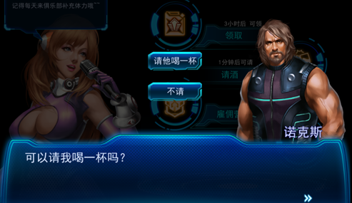 酒是每位星际旅行者最爱之物,舰员们当然不会例外。来到酒吧,先请大家喝一杯,就当交个朋友,说不定某位嗜酒的舰员正等着你呢!遇到这种情况一定爽快的请他喝一杯,说不定他一高兴,就跟你走了呢!