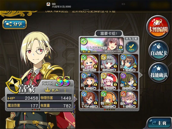组卡教程:贼请把笨蛋,泡泡,智障带上,带张光刀叠chain,剩下带buff,buff刀,水刀