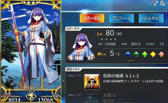 四星里面最没存在感的卡之一,与wo酱相近的数值,相近的宝具,相近的成长但技能却不尽如人意,所以阿卡林也不是没有道理的。攻击比不上同价值卡,防御也不如贞德,总而言之是一张位置很尴尬的卡。
