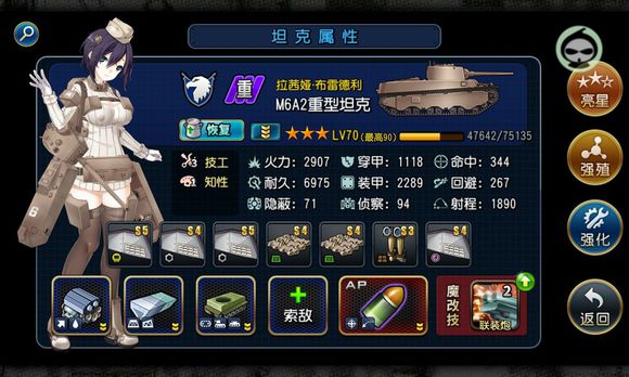 按照正常的推图以及攒科技的速度,想研发M6A1的萌新大概会在打11~12图的时候研发出M6A1,那么之后她会一直成为你队伍里面的主T。