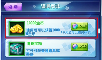 商城中每天可以使用钻石购买金币,价格固定为10钻石,根据VIP等级不同,每天有不同的购买次数限制。