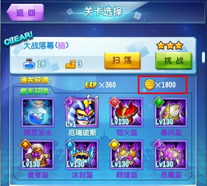 小编差点忘了这个重头戏了。每一章都有10节,每一节都能获得经验和金币。只要每一节都是3星通关,那么就能获得最后的全部通关奖励。在战斗中,只要每一个精灵都活着,那么就能够获得3星。所以,排阵和升级精灵、升级装备就非常重要。