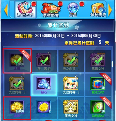 登陆奖励:每天登陆上线就能够获得金币奖励了;记得每天上线领取噢