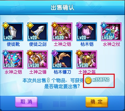 精灵、装备、道具均可进行出售;其中出售装备能够获得大量的金币