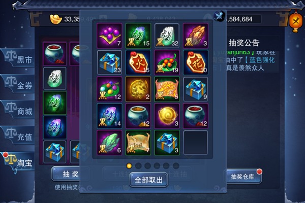 点击右上方进入抽奖仓库,可以提取单个、或全部淘宝抽奖回来的道具。