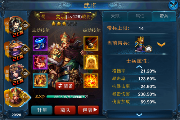 既然是战斗,那么我们就当他们双开,关羽骑兵开纯狂体真诀和乱舞,而吕蒙呢,因为小兵暴击不足,所以开暴击狂体真诀和乱舞,开始计算伤害(暂时算他们每次都暴击了):