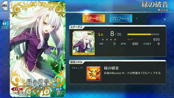 【保有技能】:自身的的Quick卡(绿卡)性能提高15%