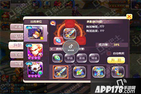 装备升阶是可以提升装备的层次的,装备升阶需要消耗不同种类的强化石,强化石由低到高分为初级、中级、高级和特级,随着装备品阶的提升,需要消耗的强化石的数量和品质也不同,当然成功率也是随层次提升而降低的!强化石可以通过不同的副本任务和不同难度的副本获得!