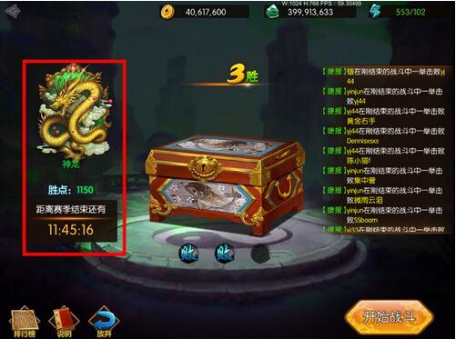 你可以点击左侧的段位勋章了解你在本赛季和上赛季比武场的战绩,本赛季战绩可是会随着你的成长更新的哦。同时,段位勋章下方会显示你当前的积分,以及本赛季的结束时间。